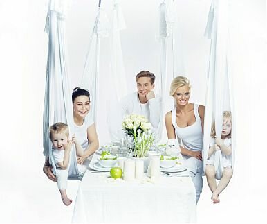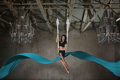У вас есть уникальный шанс попробовать самое модное направление в фитнесе — занятие с использованием шелкового гамака, подвешенного к потолку.